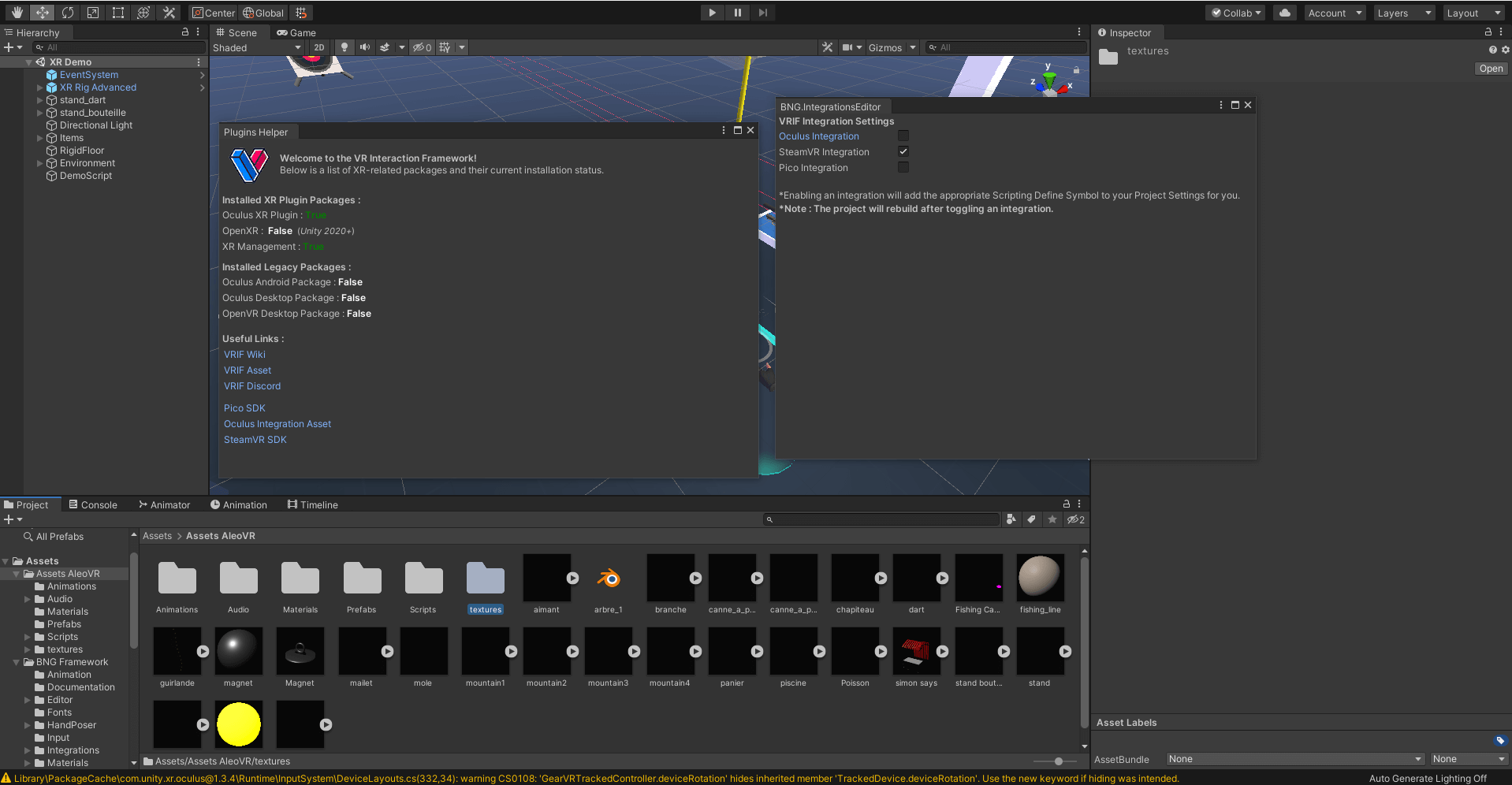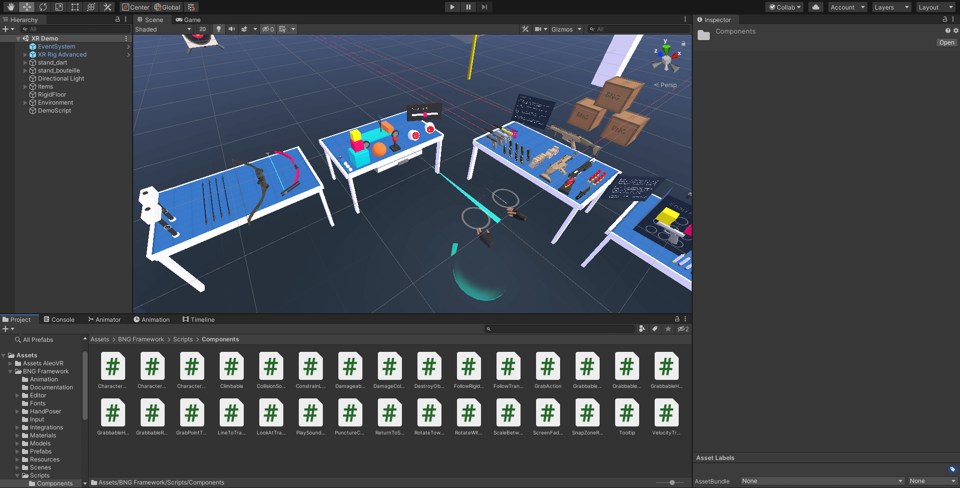 Au début du stage, j’ai découvert le développement en VR sur Unity et appris à configurer le casque et les packages nécessaires. Grâce au framework mis à disposition par AleoVR, j’ai pu explorer des scènes et interactions VR existantes, et comprendre les bases du contrôle des objets avec les mains, du tir à l’arc et d’autres mécaniques immersives.