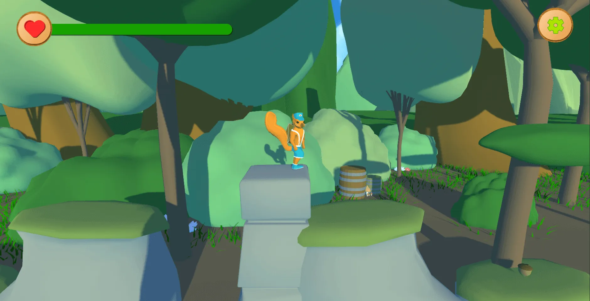 J’ai pris en charge la programmation C# des mécaniques principales du personnage : double saut, wall jump et lancer de noix. J’ai également ajusté le mouvement pour garantir un contrôle précis et une expérience fluide. Mon rôle m’a permis d’apprendre à itérer rapidement et à intégrer des fonctionnalités au fur et à mesure du développement.